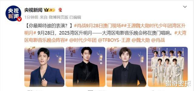 这次晚会阵容也特有意思,既有蔡琴这样唱到人心坎里的实力派,也有肖战、任嘉伦这帮能让小姑娘尖叫的顶流,还有时代少年团的小年轻。网友都在猜:“大哥会不会跟肖战合作一段?或者教小年轻两招功夫?” 这要是成真了,不得炸锅?